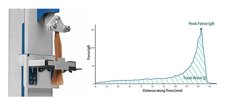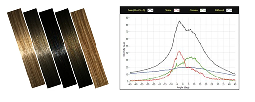 Comparative analysis of untreated and conditioned hair tresses is performed by separating shine, chroma, and diffuse components, resulting in a graph of shine angle. A narrow, intense peak on this graph signifies strong shine, aligning with visual perception of glossy hair. These measurements enable precise optimization of conditioner performance by evaluating treatments on identical hair swatches. Stepan integrates these results into product development, ensuring that conditioners formulated for brands and manufacturers achieve targeted shine attributes supported by robust data.